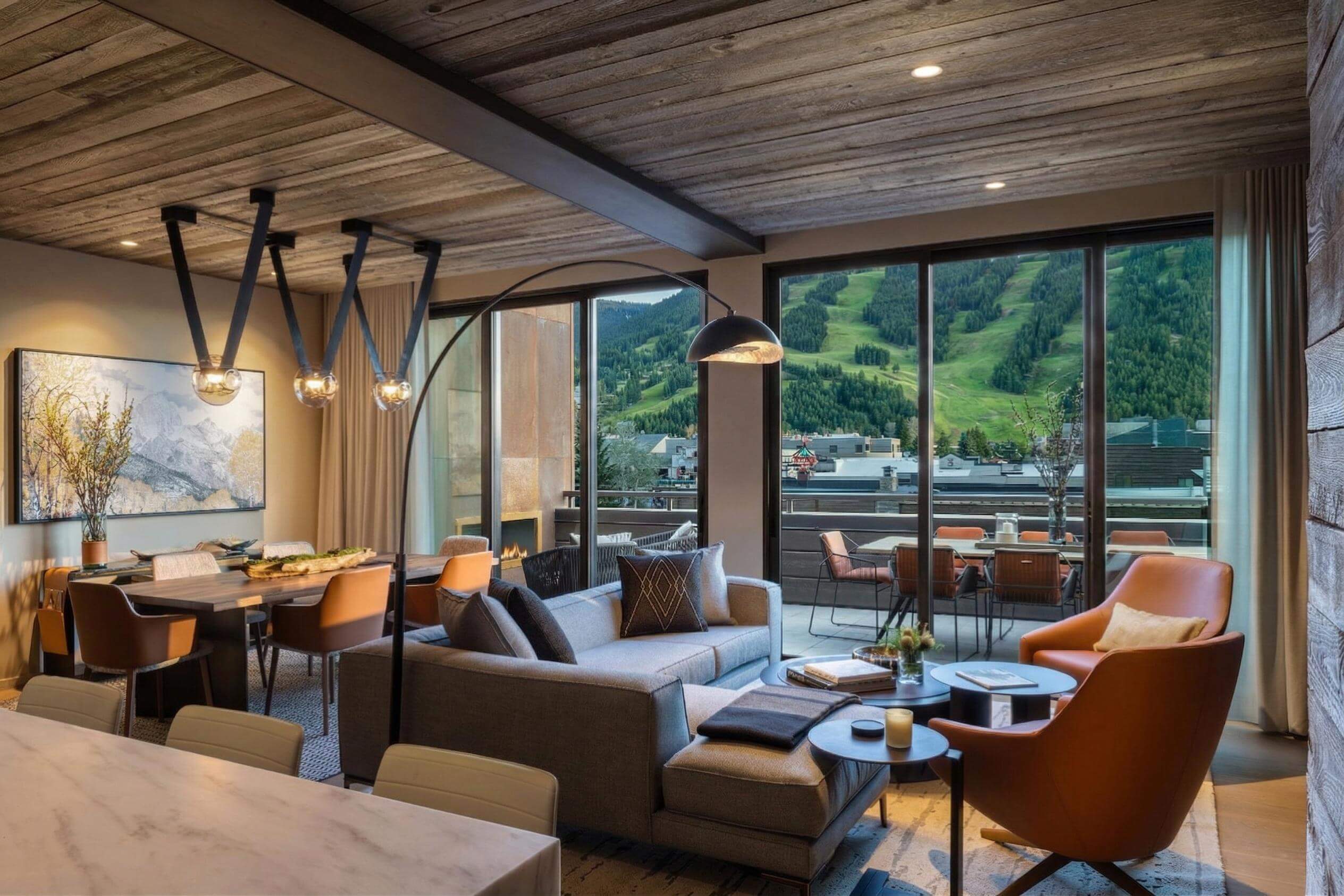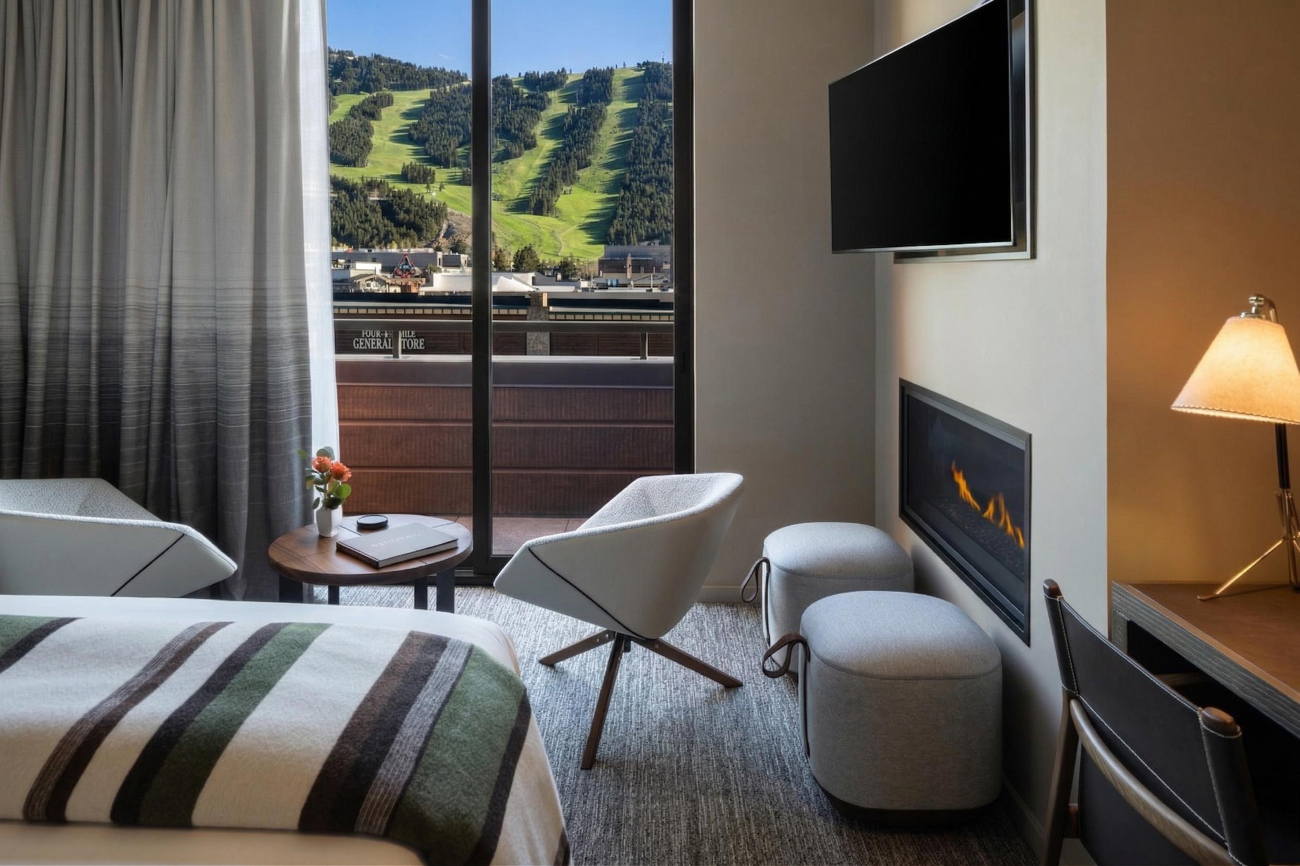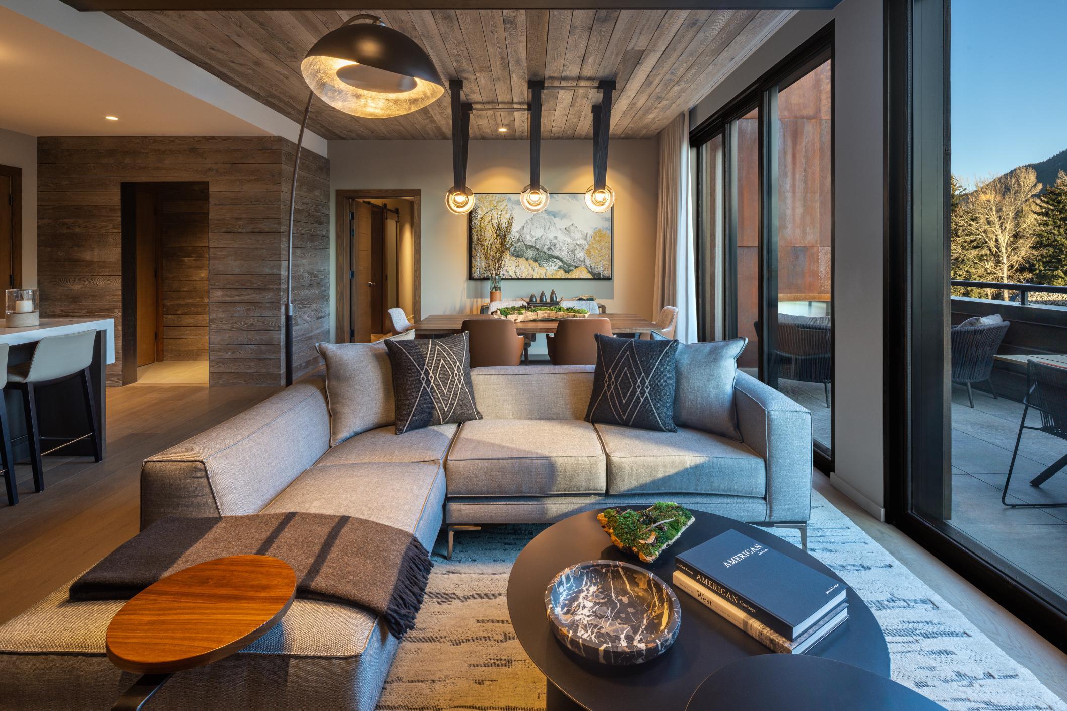 Experience Jackson’s finest suite, with 24/7 concierge, a spa-like bath, two king bedrooms, and a balcony for eight over Town Square and the mountains, warmed by an outdoor fireplace.